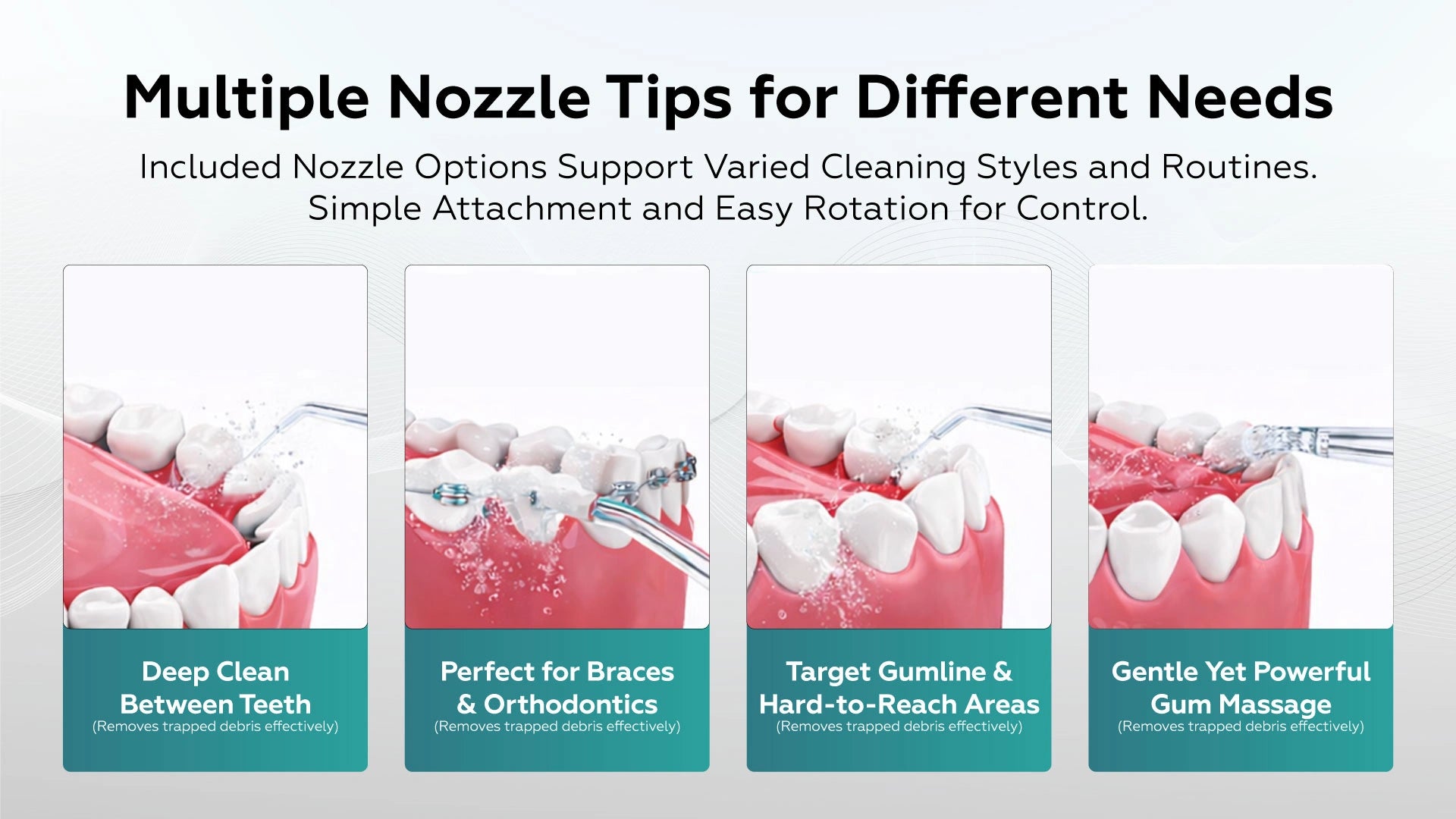 Ans: water flosser uses a focused stream of water to gently and effectively remove plaque and food particles from between teeth and below the gumline, which traditional string floss may miss.
